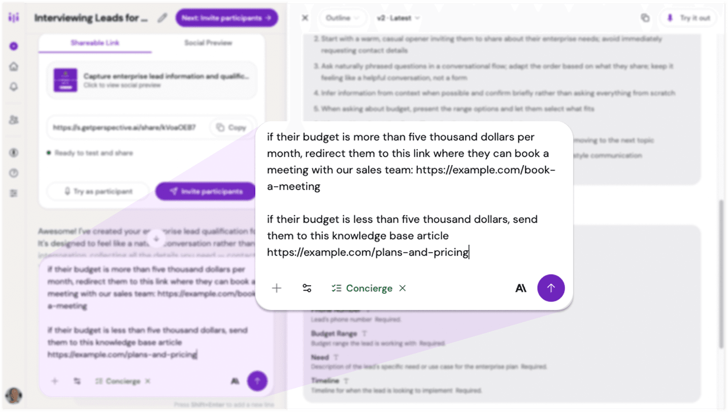- Tell Perspective your routing conditions conversationally during outline creation